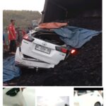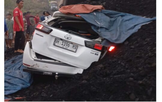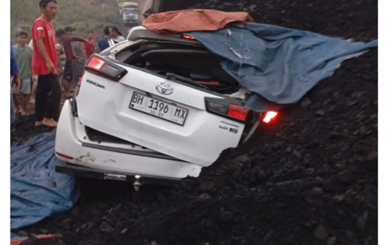 *DUA TEWAS, EMPAT LUKA AKIBAT TRUK BATU BARA TERGULING TIMPA MOBIL DI MUSI BANYUASIN*
