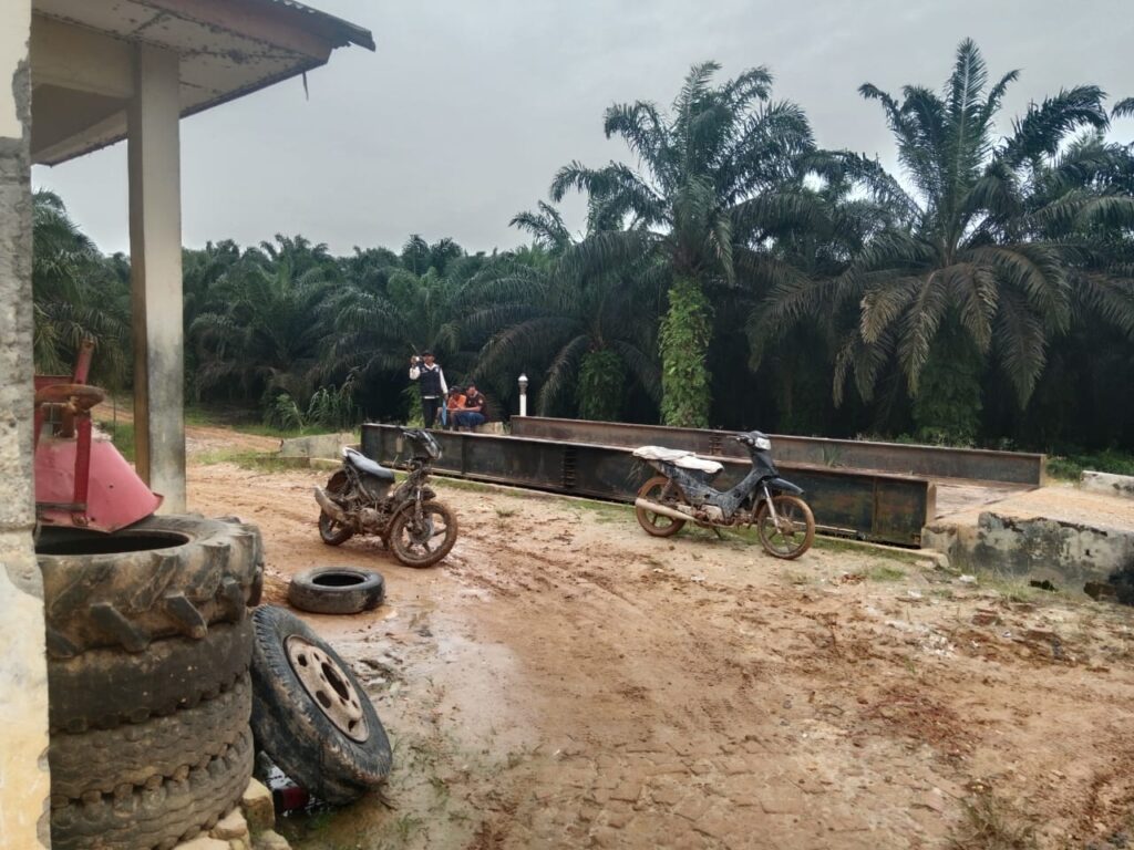 ” Lantas srianto pun berkeliling di perusahaan tersebut terlihat beberapa alat berat dan satu timbangan sawit di dalam perusahaan tersebut. Dan mereka menanam sawit di bibir anak sungai ,tidak ada (das).